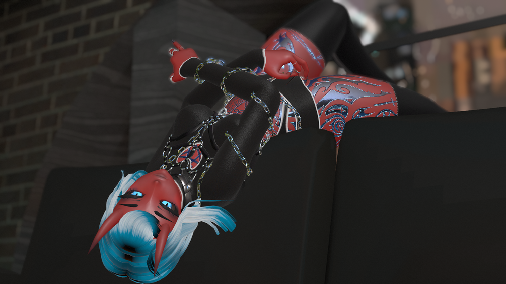 Bodysuit, shorts, boots, chains, heart and diamond rings, strapon, tail, heart bed and icons by myself YesPleaseTy#2188