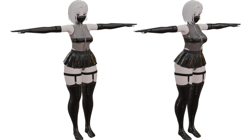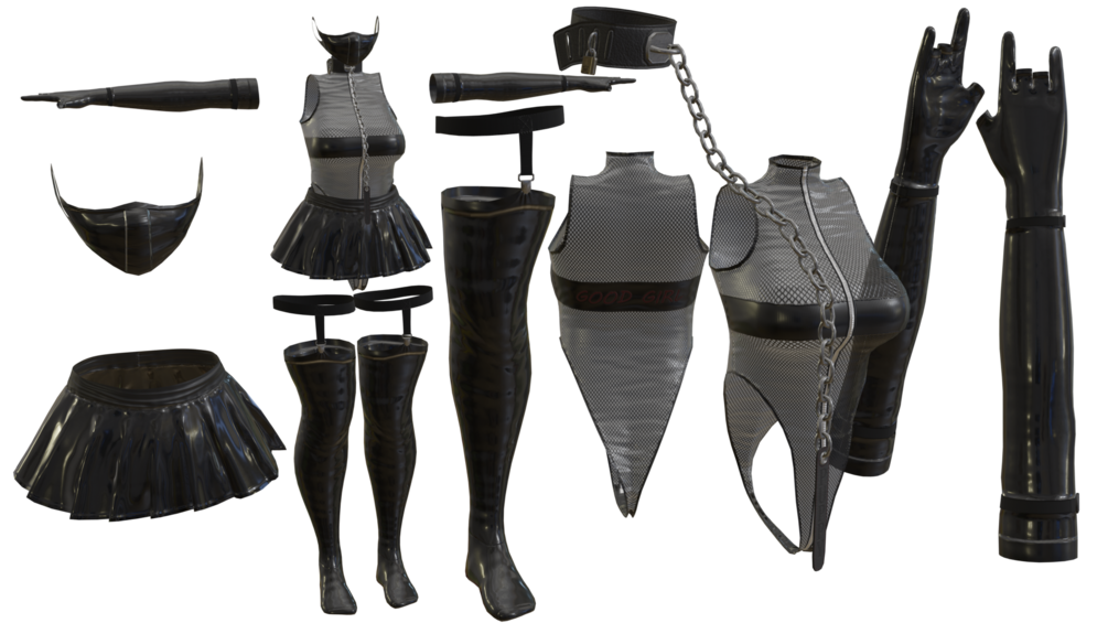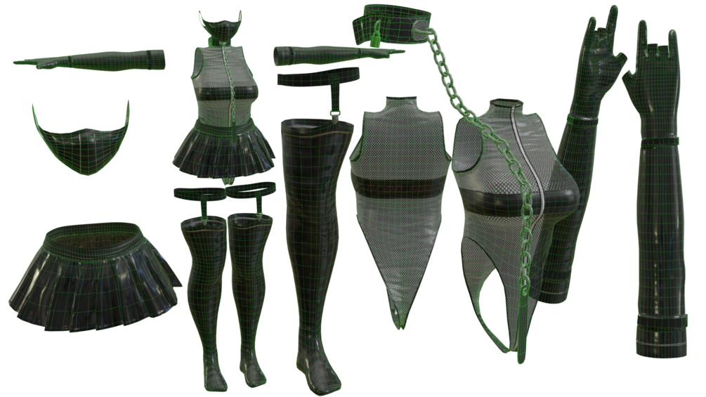 Outfit comes with 2 sets; one with a fishnet-y? style and a regular transparent latex style.